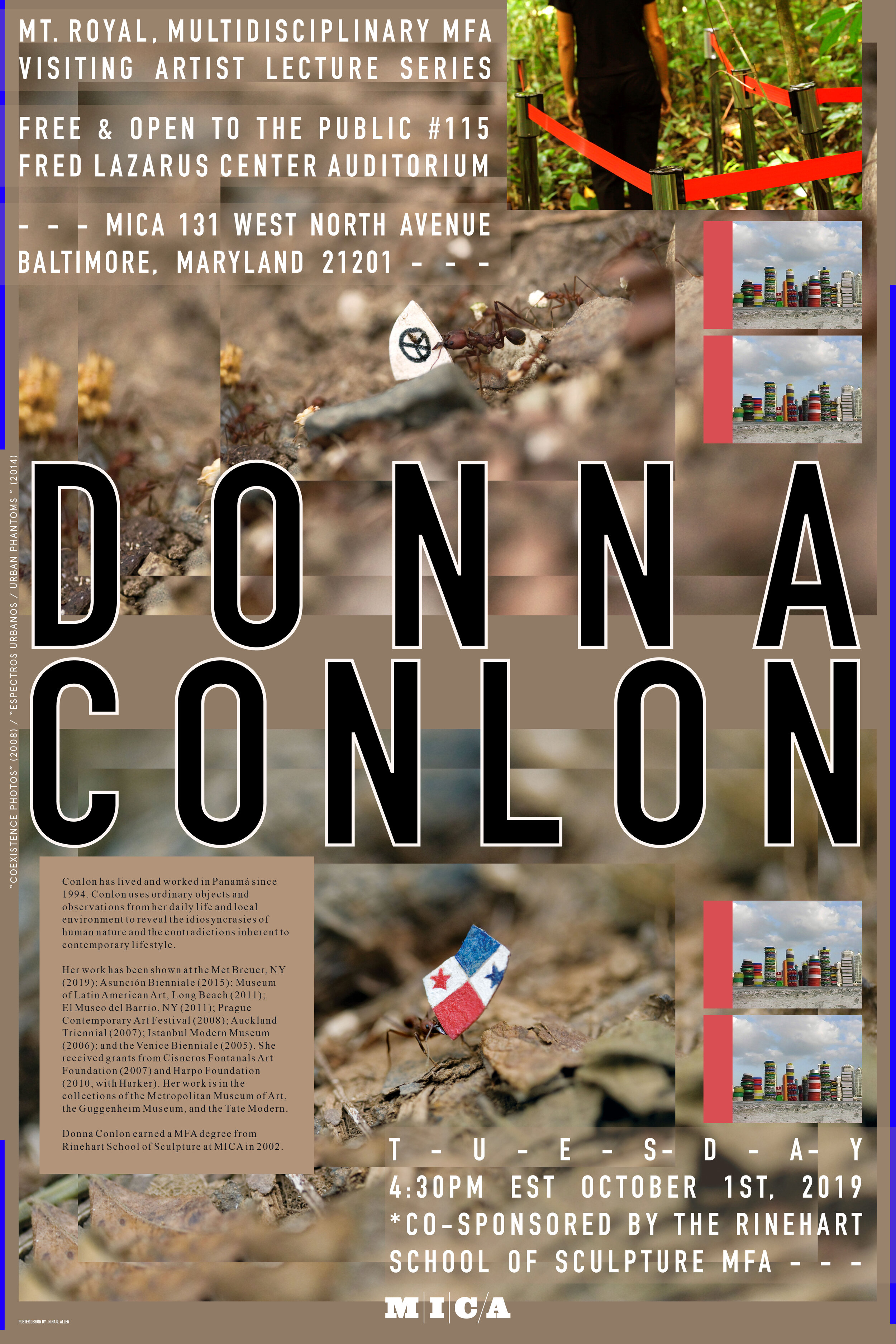 We are excited to host a talk by VA Donna Conlon! Please join us for her lecture tomorrow at 4:30pm EST. Co-sponsored by the Rinehart School of Sculpture. Poster: Nina Q. Allen'20.
